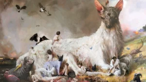 Es, obviamente, difícil comprender y disfrutar la obra de Ouka Leele sin tener en cuenta la Movida madrileña y todas las corrientes y movimientos modernos que se aglutinaron en torno a la capital de España durante los años 80. Diría, de hecho, que cada una de sus creaciones se encuentra acompañada de música y es imposible poder gozarlas sin escuchar canciones de Golpes Bajos, Parálisis Permanente, Alaska y Dinarama o Peor imposible entre otras muchas bandas. Y que, sin dudas, si tuviera que ponerle un título a una retrospectiva de su obra al completo, lo tendría muy claro: la bola de cristal. Pues hay cientos de conexiones íntimas con el famoso programa televisivo español y, aunque no recuerdo si su arte apareció en alguna de las emisiones en concreto, yo diría que cualquiera de los lienzos, fotografías, vestidos y objetos de diseño que ha creado, podrían (y deberían) haber aparecido allí con absoluta naturalidad, acompañando a la Bruja Avería y los electroduendes, Javier Gurruchaga, Santiago Auserón o Loquillo.