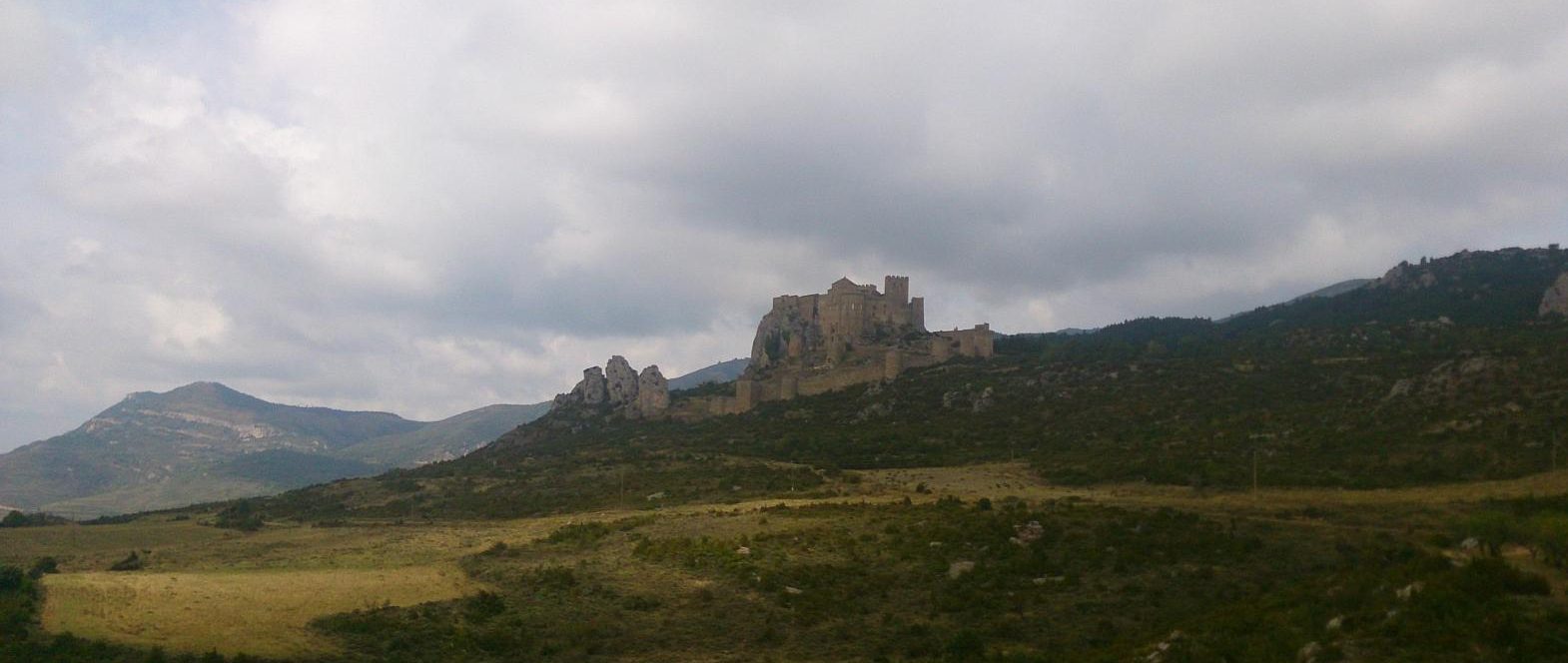 Este sábado sin embargo me tiene preparada una sorpresa. Tras pasar el río Riel, conforme subo por unos senderos pedregosos oteo a una pareja caminando. En principio no entiendo bien qué hacen. Empujan con todas sus fuerzas un vehículo a cuatro ruedas. Mi paso sigue siendo muy lento y no termino de alcanzarlos. Cuando el terreno se empina me acerco a ellos. Pero cuando desciende vuelven a sacarme ventaja. Entre medias, contemplo a lo lejos el fastuoso castillo de Loarre. La fortaleza románica por excelencia. Un baluarte desde el que rey Sancho avizoraba toda la hoya de Huesca. Me gustaría visitarlo pero debería desviarme varios kilómetros y no me encuentro con la energía suficiente para realizar más esfuerzos. Es probable que llegara al castillo y en la puerta cayera al suelo. Así que sigo con la vista atenta a la pareja. Ambos son jóvenes. No deben tener más de 30 años. Están en forma. Diría que tienen porte atlético. Las cuestas se hacen más pronunciadas y casi los alcanzo. Sorprendido, veo que en el interior del vehículo que empujan se encuentra un niño pequeño. ¡Son una joven pareja de peregrinos que desean hacer el Camino junto a un retoño que no debe tener más de dos años! No sé bien si piensan llegar a Santiago pero aún así su ejemplo me deja sin palabras.